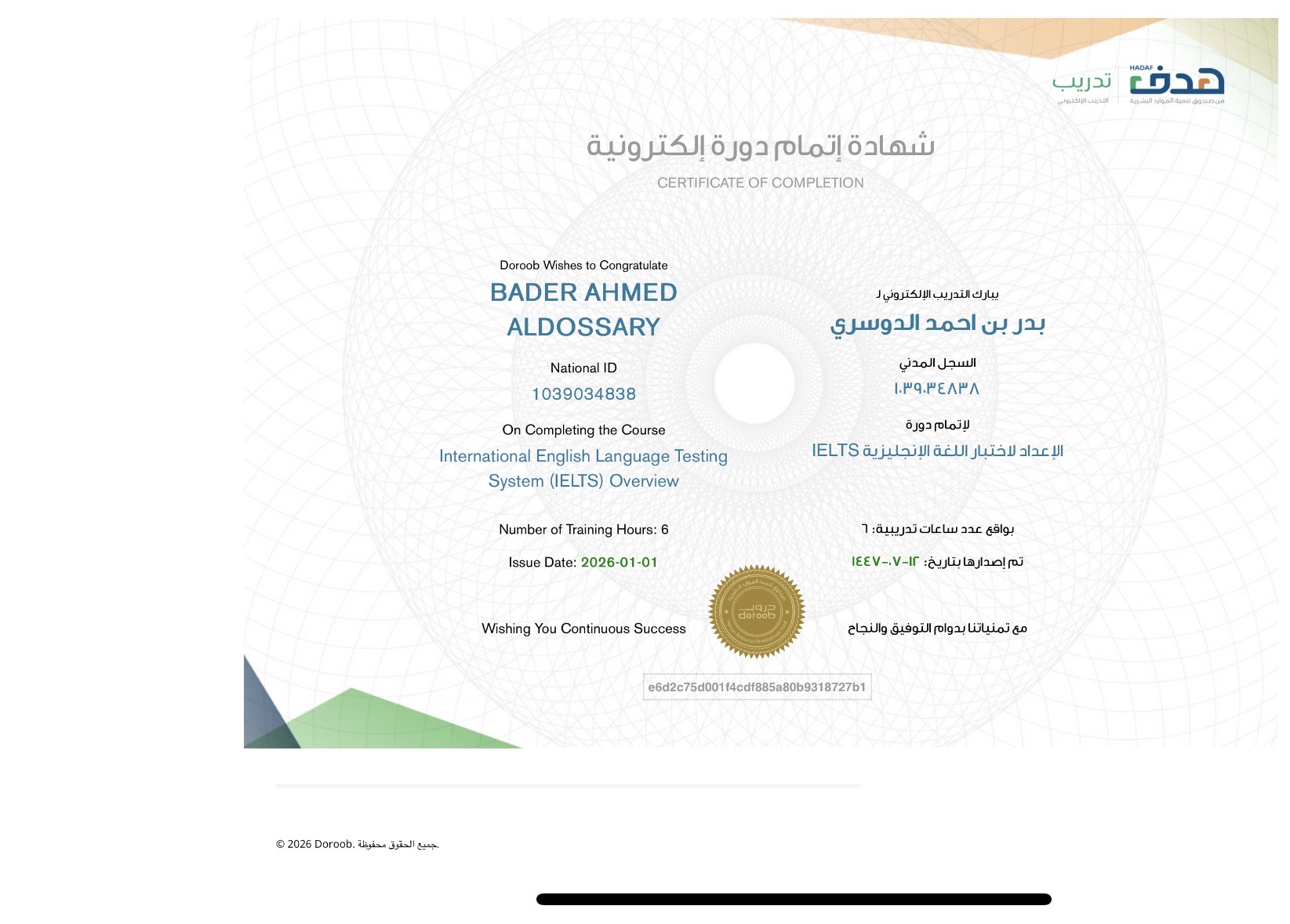 - رقم / معرف الشهادة :